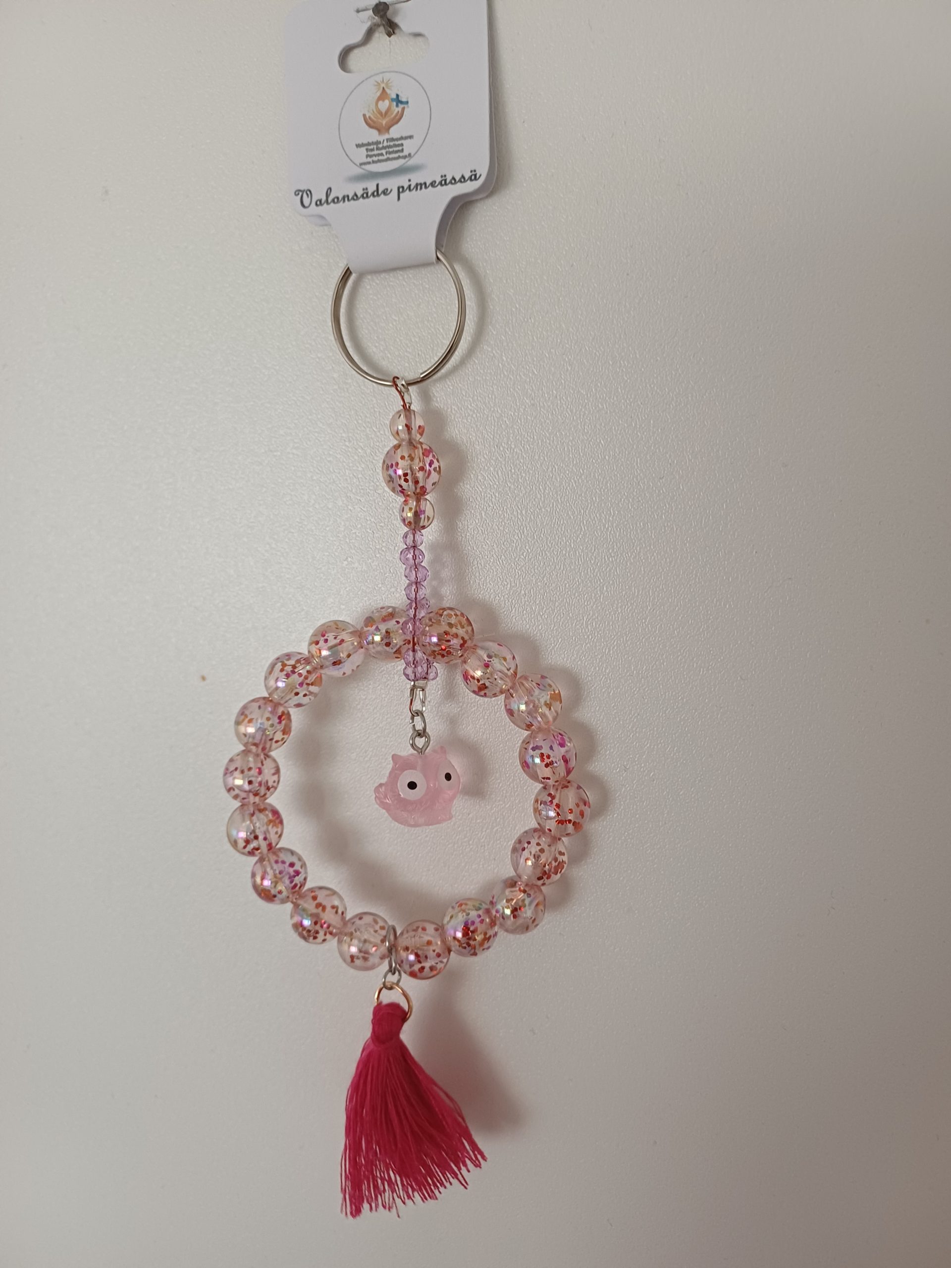 - Käyttötarkoitus: Laukkukoru, avaimenperä, sisustusriipus ikkunaan tai kodin koriste