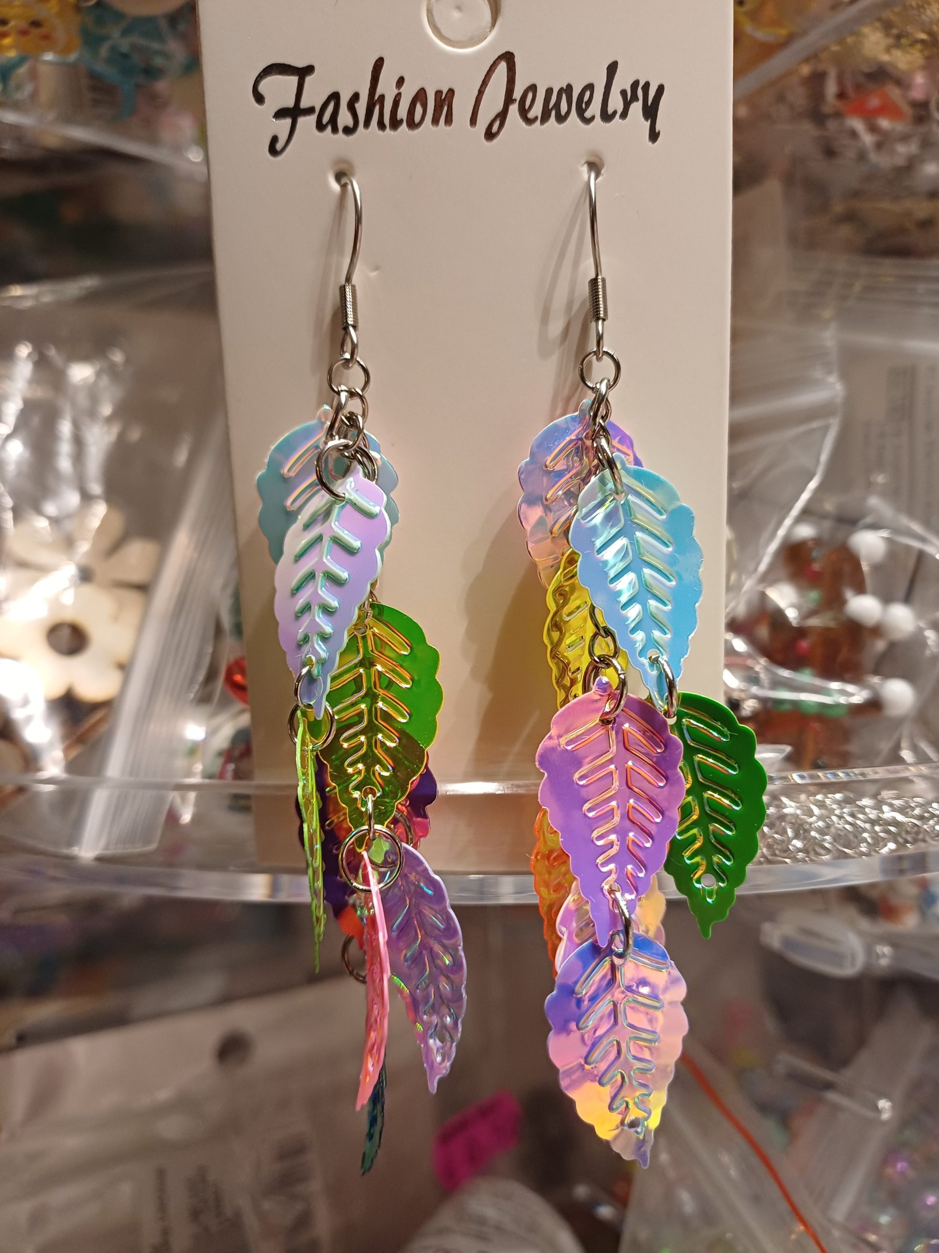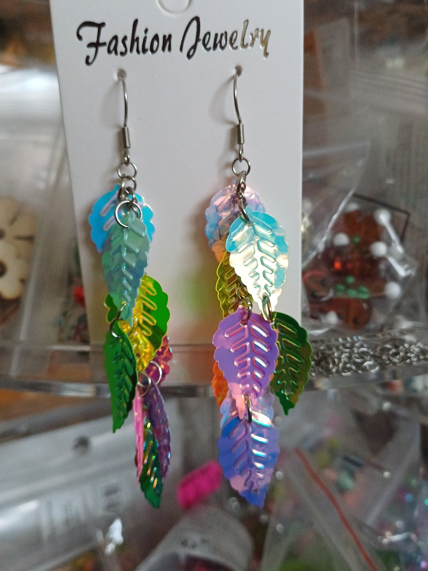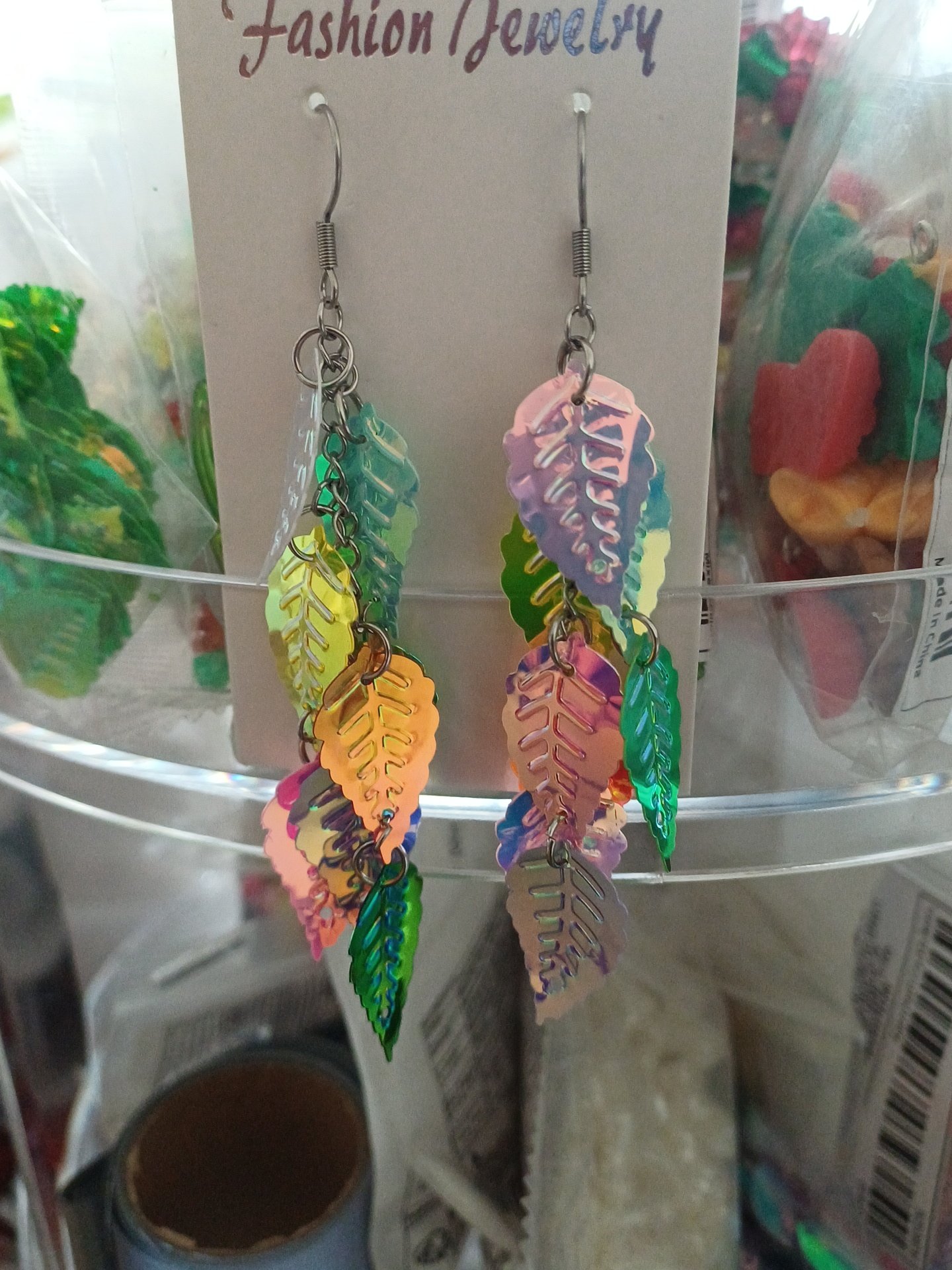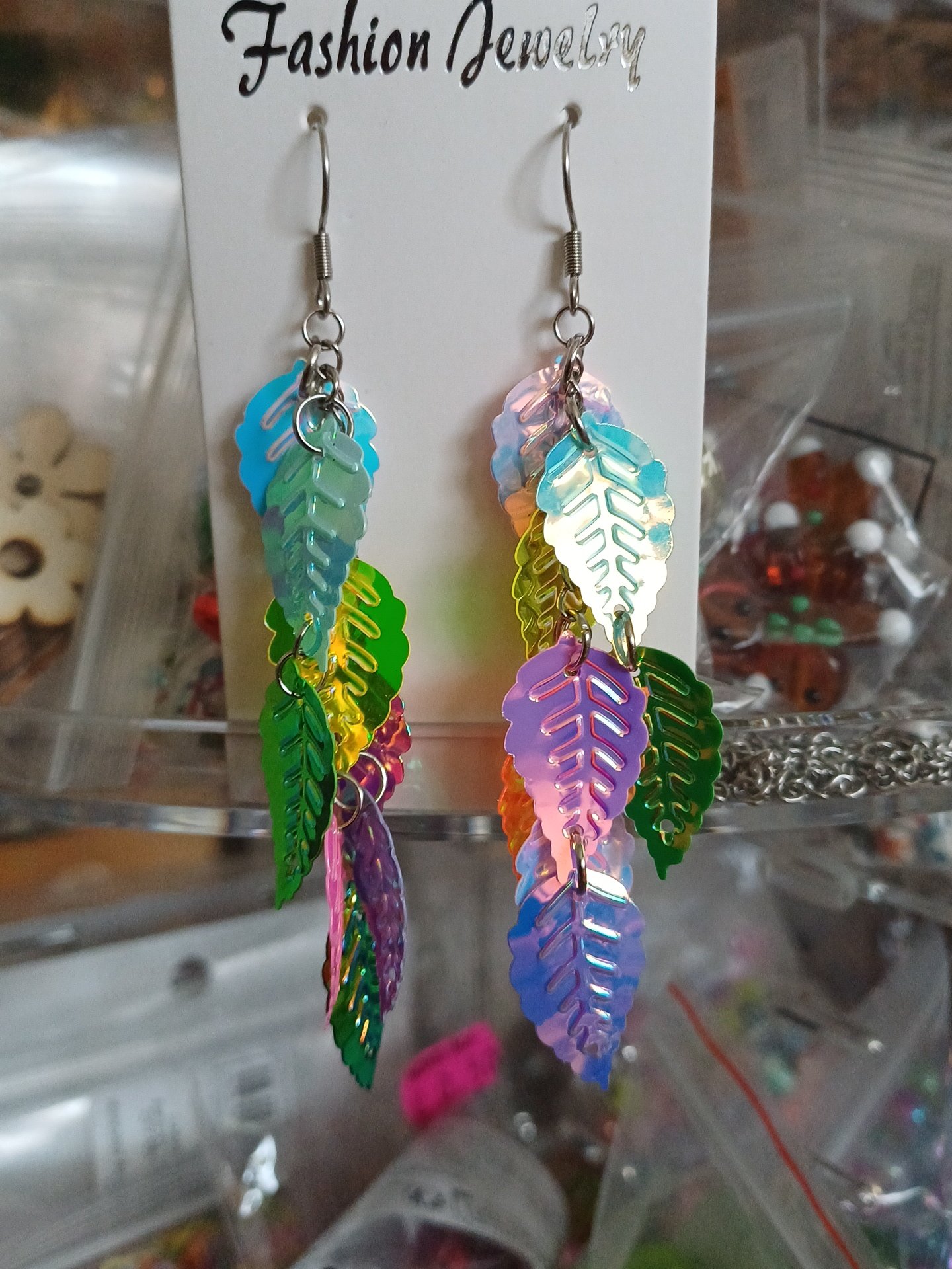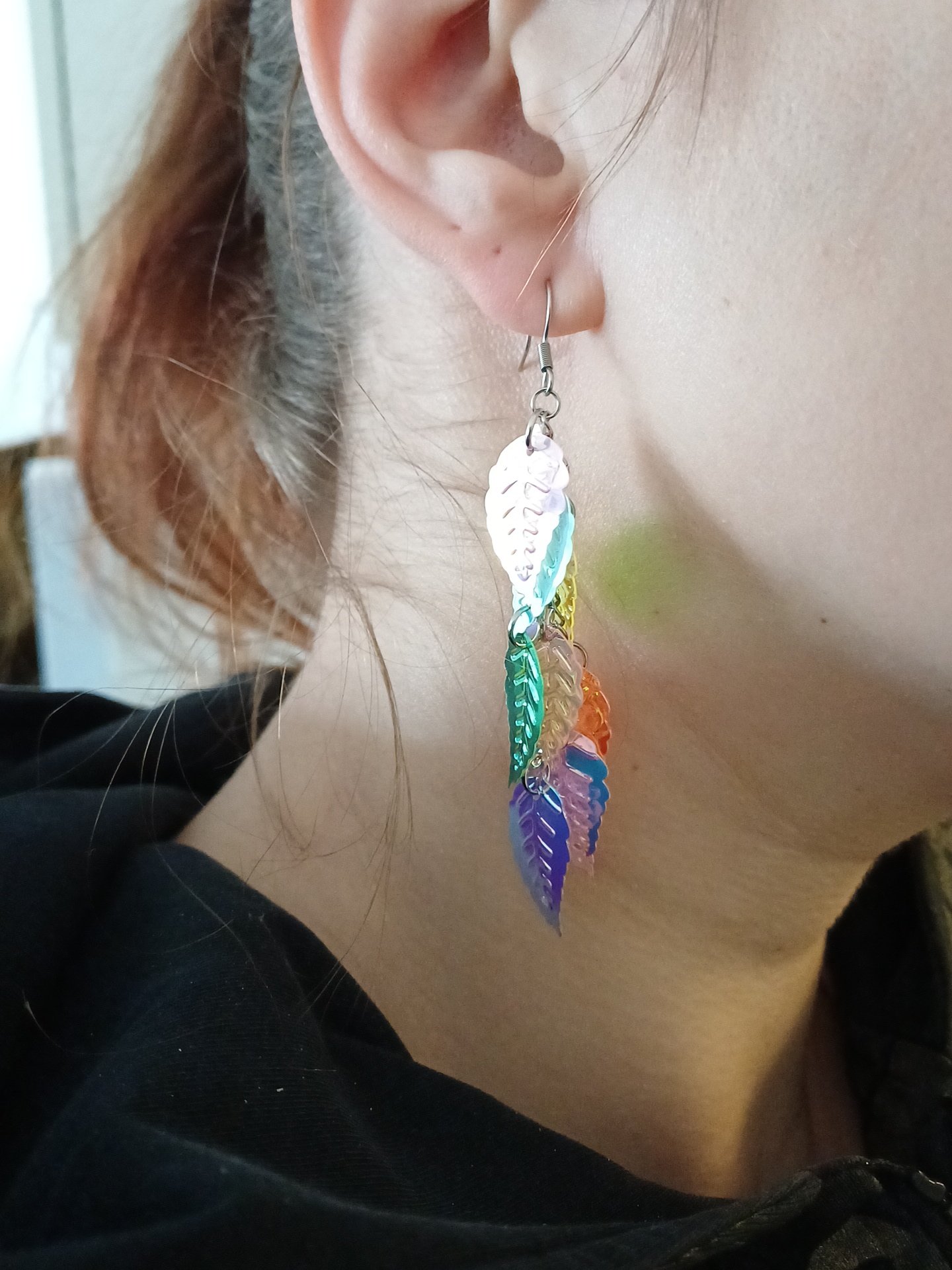 Värikkäät ja eläväiset lehtikorvakorut, jotka tuovat valoa ja iloa asuun kuin asuun. Moniväriset, valon mukaan väriä vaihtavat lehdet vaihtavat väriä katselukulman mukaan.